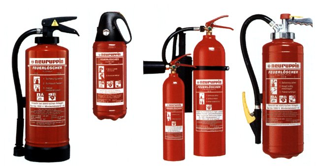 Pulver-, Schaum-, Kohlendioxid-, Wasser-, Fettbrand und Metallbrandlöschern von 1 kg bis 12 kg